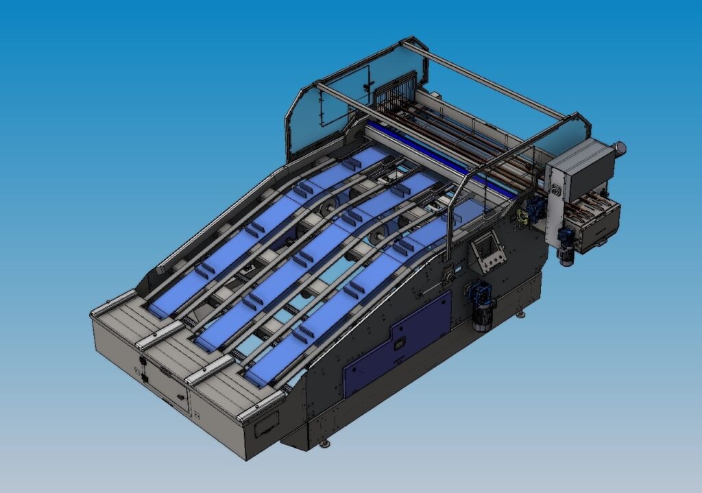 Gracias a su diseño versátil, es compatible con diferentes formatos de cajas y se integra fácilmente en líneas de clasificación existentes. Incorpora un sistema de control intuitivo que permite ajustar parámetros como la velocidad y el ángulo de volcado, adaptándose a distintos tipos de fruta y necesidades de producción.